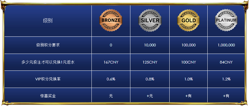 您的每一元人民币老虎机投注都能获得一个忠实玩家积分。如果您在一个月之内(30天)累积到相应级别的积分要求,我们就在下一个月的第 一天将您的级别升至相应级别。您就可以享受更好的积分兑换比例。